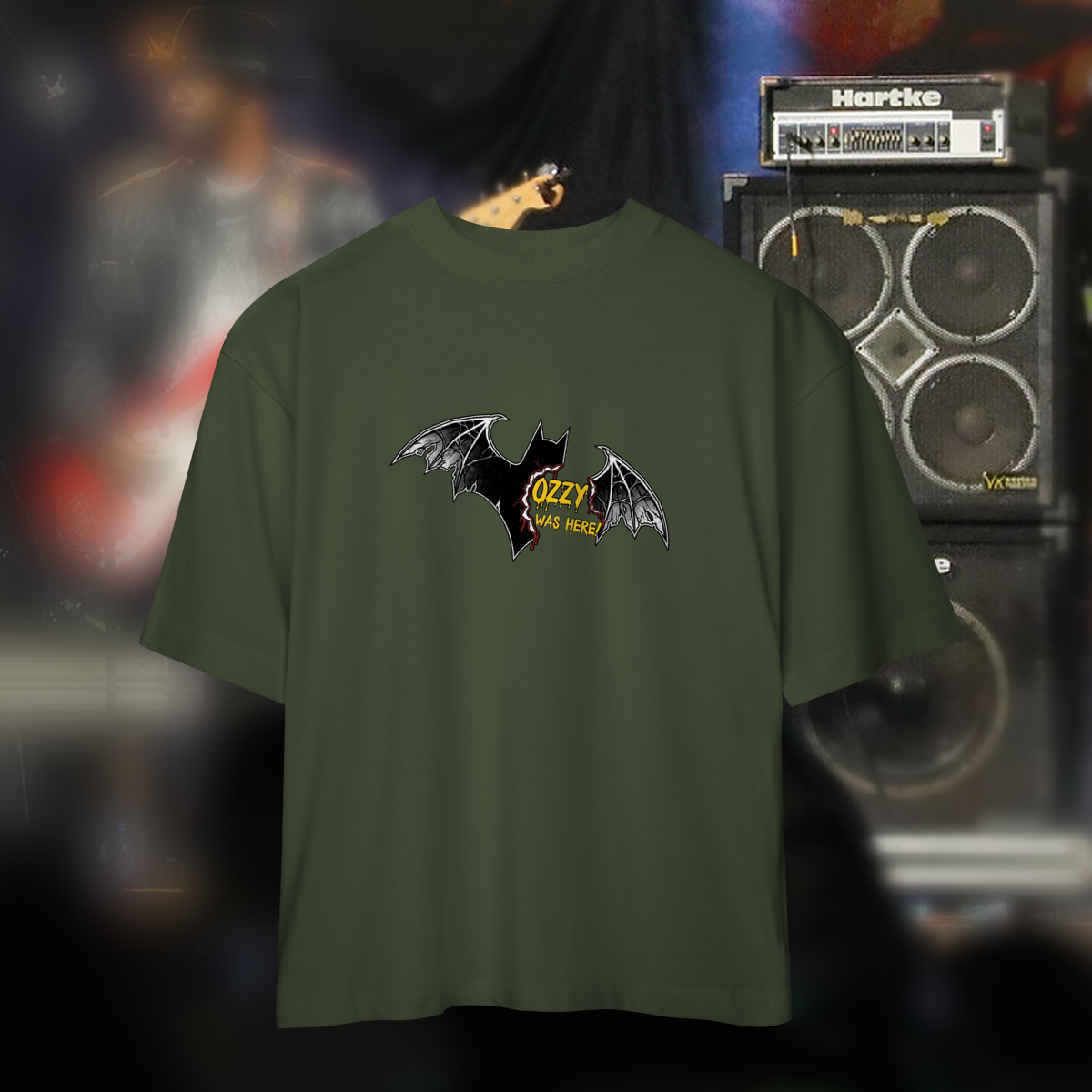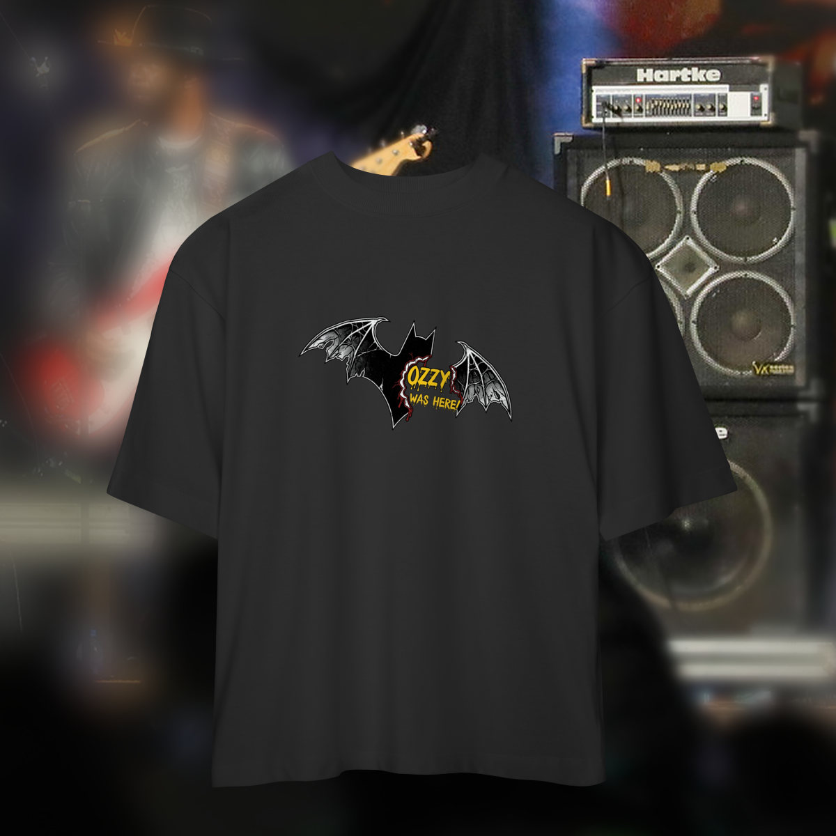 Estilo e rebeldia em forma de camiseta  A estampa traduz essa aura: elementos sombrios, silhuetas de morcego e tipografia impactante que remetem ao metal dos anos 80. É uma peça que carrega a irreverência e o humor ácido de Ozzy, transformando um momento polêmico em símbolo cultural.