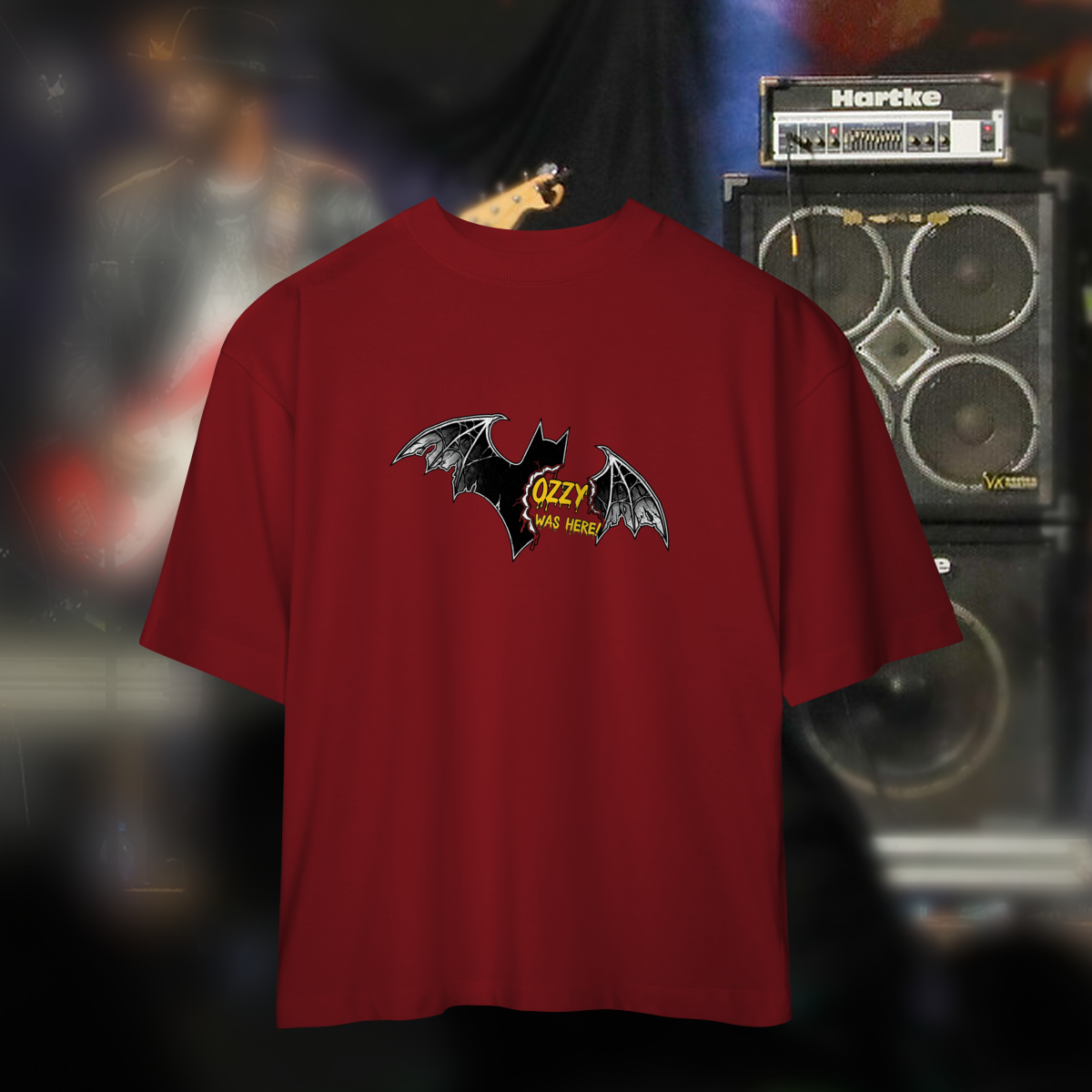 Esta camiseta é uma celebração de um dos episódios mais icônicos e controversos da história do rock: o dia em que Ozzy Osbourne mordeu um morcego lançado ao palco. Mais do que um ato chocante, esse momento cristalizou a imagem de Ozzy como o “Prince of Darkness” e reforçou sua postura de artista que vive o rock como atitude, não apenas como música.