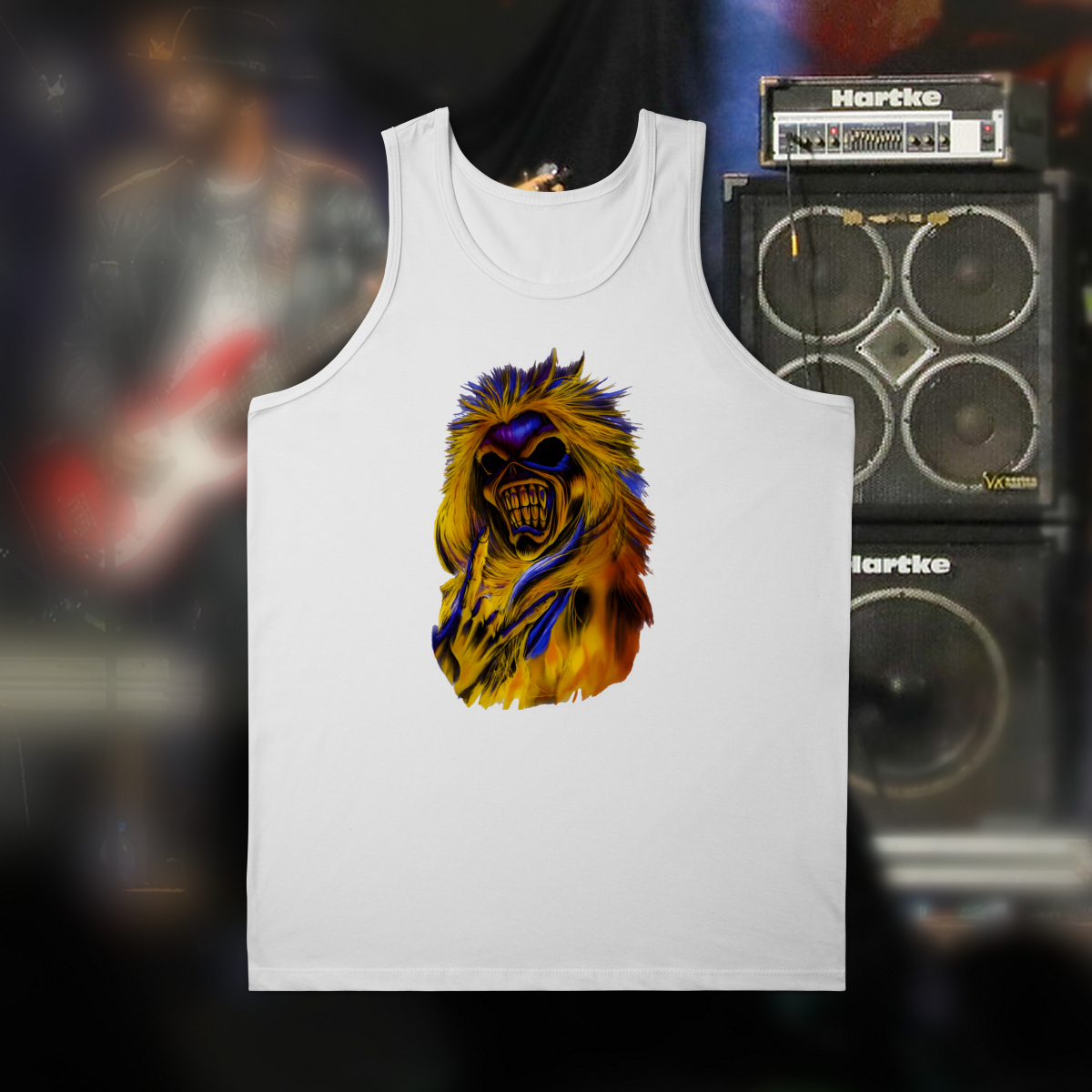 Se você é fã de Iron Maiden, sabe que Eddie não é apenas um mascote — ele é uma lenda viva do metal. Esta camiseta traz o design "Rock on, Eddie!", uma versão do ícone mais insano do rock. Com cores vibrantes e atitude de sobra, essa peça é feita para quem vive o som pesado com alma e estilo.