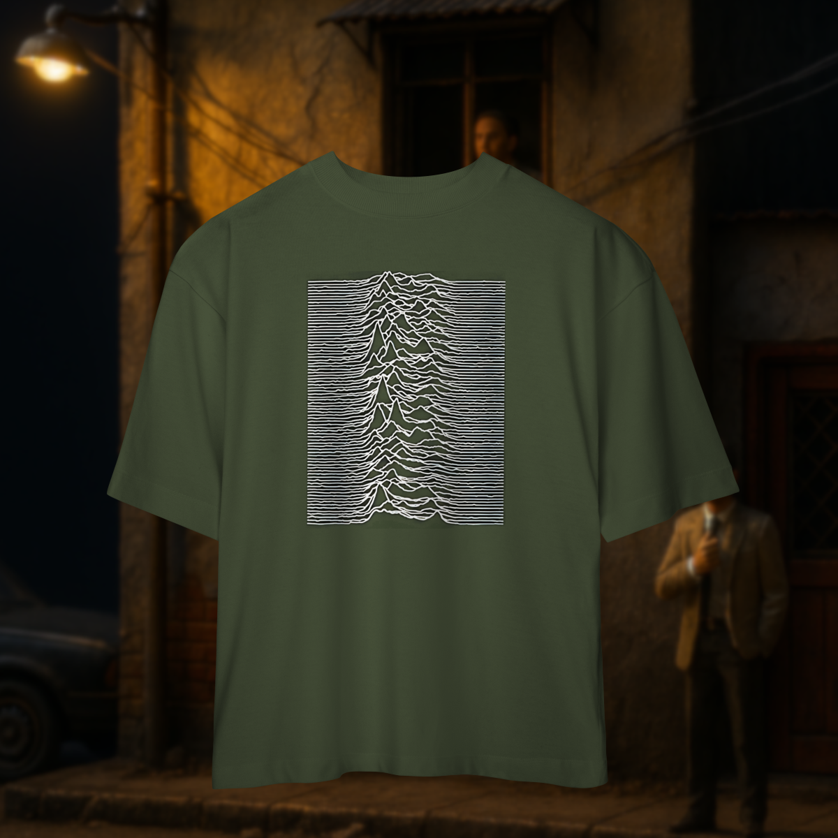 A estética que virou símbolo A arte da capa, com ondas de pulsos de rádio de uma estrela morta, tornou-se um ícone cultural. Na camiseta, ela ganha vida como símbolo de introspecção, rebeldia silenciosa e estilo atemporal. É perfeita para quem se identifica com o lado mais profundo da música — aquele que não grita, mas ecoa.